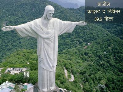 क्राइस्ट द रिडीमर: इस मूर्ति की ऊंचाई 39.6 मीटर है। ईसा मसीह की इस मूर्ति को साल 1931 में स्थापित किया गया था।