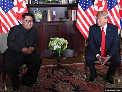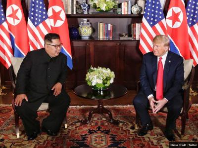 अमेरिकी राष्ट्रपति डोनाल्ड ट्रंप और उत्तर कोरियाई नेता किम जोंग उन आज यहां ऐतिहासिक शिखर वार्ता खत्म हो गई है।