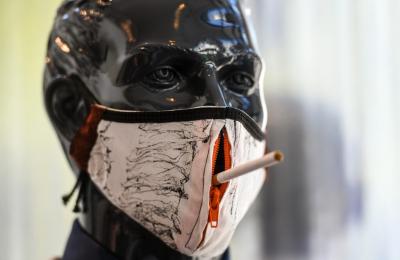 इस मास्क का क्या ही कहना, इसमें चेन लगा हुआ है और मॉडल को सिगरेट पीते हुए दिखाया गया है।