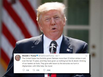 डोनाल्ड ट्रम्प ने ट्वीट करके बताया कि अब तक अमेरिका पाक को सैन्य मदद के नाम पर डेढ़ हज़ार करोड़ से ज्यादा पैसे दे चुका है।