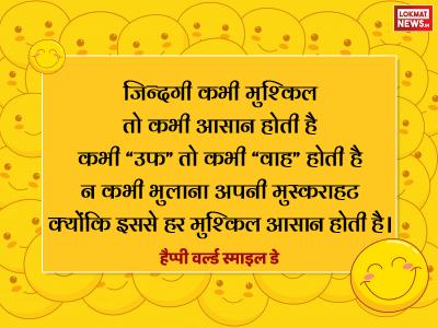 10. जिन्दगी कभी मुश्किल तो कभी आसान होती है कभी “उफ” तो कभी “वाह” होती है न कभी भुलाना अपनी मुस्कराहट क्योंकि इससे हर मुश्किल आसान होती है। हैप्पी वर्ल्ड स्माइल डे