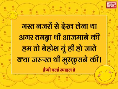 9. मस्त नजरों से देख लेना था अगर तमन्ना थी आजमाने की हम तो बेहोश यूं ही हो जाते क्या जरूरत थी मुस्कुराने की। हैप्पी वर्ल्ड स्माइल डे