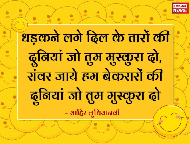 1. धड़कने लगे दिल के तारों की दुनियां जो तुम मुस्कुरा दो, संवर जाये हम बेकरारों की दुनियां जो तुम मुस्कुरा दो, - साहिर लुधियानवी हैप्पी वर्ल्ड स्माइल डे