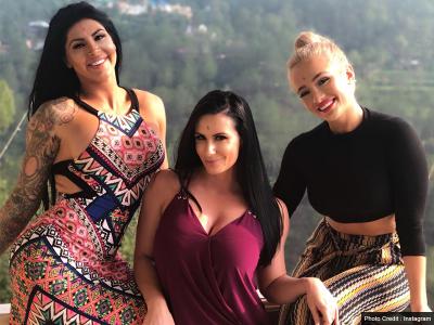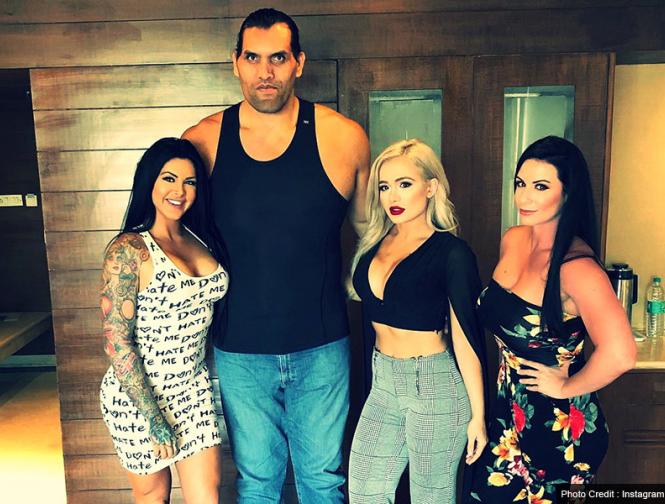 खली के साथ विदेशी महिला रेसलर्स में कैटी फोर्ब्स, स्कारलेट, जैमी जोन्सन के साथ।