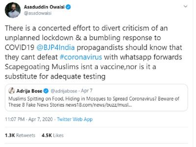 — Asaduddin Owaisi (@asadowaisi) April 7, 2020