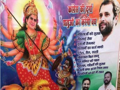 पोस्टर वारः राहुल गांधी बने 'महादेव', प्रियंका का 'दुर्गा' अवतार आया नजर
