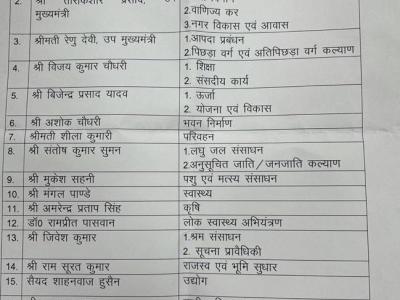 यहां बता दें कि बिहार सरकार की कैबिनेट में अब कुल 31 मंत्री हो चुके हैं, विधानसभा चुनाव परिणाम आने के बाद मुख्यमंत्री नीतीश कुमार सहित कुल 14 चेहरों ने शपथ लिया था।