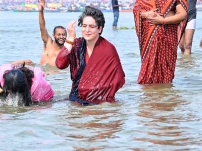 मौनी अमावस्या पर संगम में प्रियंका गांधी ने लगाई डुबकी, आनंद भवन का भी किया दौरा