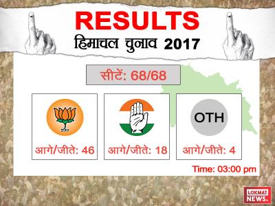 - 3:00 बजे तक 68 सीटों के रुझान सामने आ चुके हैं। बीजेपी 46 और कांग्रेस 18 सीट और अन्य 4 सीट पर बढ़त बनाए हुए हैं।
