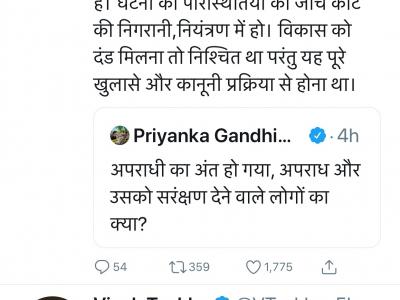 उन्होंने लिखा है कि, यह पता लगाना आवश्यक है कि, विकास दुबे ने मध्य प्रदेश के उज्जैन महाकाल मंदिर को सरेंडर के लिए क्यों चुना? मध्यप्रदेश के कौन से प्रभावशाली व्यक्ति के भरोसे वो यहां उत्तर प्रदेश पुलिस के एनकाउंटर से बचने आया था?