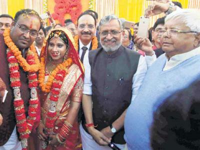 बिहार के उप मुख्यमंत्री सुशील कुमार मोदी के बेटे उत्कर्ष की शादी यामिनी के साथ संपन्न हुई। पटना के वेटनरी कॉलेज के मैदान में आयोजित इस विवाह समारोह में कई गणमान्य व्यक्ति पहुंचे थे। तमाम राजनीतिक विरोधों के बावजूद इस आयोजन में लालू प्रसाद यादव भी पहुंचे। कार्यक्रम में पहुंचते ही लालू ने सुशील मोदी से मुलाकात की और उन्हें बेटे की शादी की बधाई दी। हालांकि लालू के पहुंचने पर लोग आश्चर्य भी कर रहे थे। लालू के बेटे तेजप्रताप यादव ने इस शादी को लेकर सुशील मोदी पर आपत्तिजनक टिप्पणी की थी, जिसके बाद बिहार की राजनीति में उबाल आ गया था।