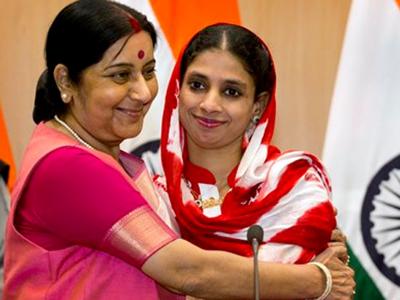 बोनसः विदेश मंत्री सुषमा स्वराज के साथ गीता की ये तस्वीर सच में बोनस सरीखा है।पाकिस्तान से लौटी गीता के मा-बाप को खोजने के लिए सुषमा स्वराज ने वीडियो भी बनाया था।