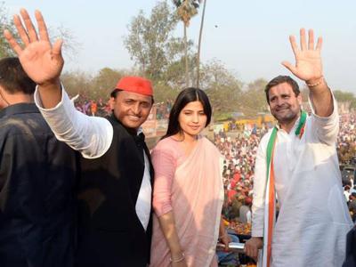 उत्तर प्रदेश विधानसभा चुनाव में कांग्रेस और समाजवादी पार्टी ने गठबंधन किया। चुनाव प्रचार में राहुल और अखिलेश के साथ डिंपल यादव की तस्वीर ने काफी सुर्खियां बटोरी थी। ये भी 2017 की सबसे खूबसूरत राजनीतिक तस्वीरों में से एक है।