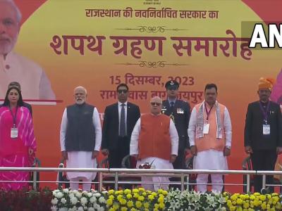 नई राजस्थान सरकार के शपथ ग्रहण समारोह में प्रधानमंत्री नरेंद्र मोदी, केंद्रीय गृह मंत्री अमित शाह और भाजपा अध्यक्ष जेपी नड्डा सहित शीर्ष भाजपा नेता कार्यक्रम शामिल हुए। भजनलाल शर्मा ने राजस्थान में नई भाजपा सरकार के कार्यों को प्रधानमंत्री नरेंद्र मोदी के दृष्टिकोण के अनुरूप बनाने की प्रतिबद्धता व्यक्त की है।