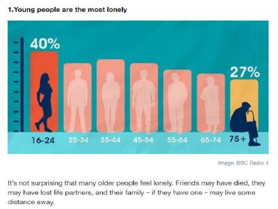 अमूमन हम ये मानते हैं कि पूरी जिन्दगी बिताने के बाद जब व्यक्ति का बुढ़ापा शुरू होता है तो वह अकेला पड़ जाता है। उस समय तक वो अपने कई दोस्त, रिश्तेदार और यहां तक कि पार्टनर को भी खो चुका होता है। इसलिए बुढ़ापे में अकेलापन सबसे अधिक होता है। लेकिन सर्वे की मानें तो 16 से 24 वर्ष की आयु के 40 फीसदी और 75 वर्ष की आयु से अधिक के मात्र 27 फीसदी लोग अकेलेपन का शिकार हैं। यानी यंग जनरेशन अकेलापन से पीड़ित है।