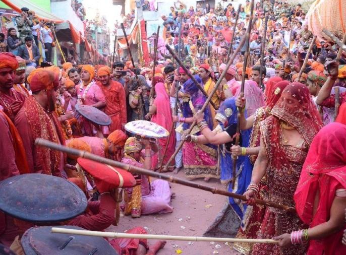 लट्ठमार होली में महिलाएं यानी हुल्यारिन लट्ठ लेकर हुल्यारों को यानी पुरुषों को मजाकिया अंदाज में पीटती हैं। वहीं पुरुष ढाल लेकर महिलाओं से बचने का प्रयास करते हैं। कहते हैं कि राधा और उनकी सेहलियों से बचने के लिए ग्वालों ने ढाल का उपयोग किया। हंसी ठिठोली में हुई ये घटना आज लट्ठमार होली के तौर पर जानी जाती है। तब से ही बरसाना में लट्ठमार होली खेलने का चलन है।