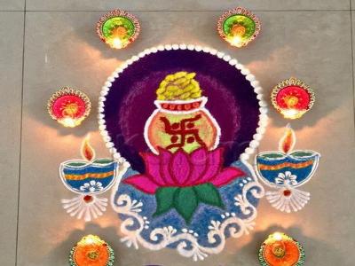 वैसे तो इस बात का कोई नियम नहीं है कि धनतेरस पर किस तरह की रंगोली बनाई जाती है, लेकिन कुछ लोगों का मानना है कि एक 'कलश' हमेशा रंगोली डिजाइन का हिस्सा होना चाहिए, खासकर धनतेरस के लिए। ऐसा इसलिए है, क्योंकि धन का अर्थ है धन, और कलश धन का प्रतीक है।