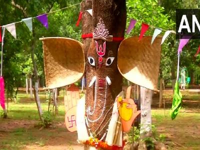 मंगलवार को दस दिवसीय गणेश चतुर्थी शुरू होते ही, देश भर में भक्तों ने अपने-अपने अनूठे तरीके से भगवान गणेश का स्वागत किया। इसी कड़ी ओडिशा में धर्म और सामाजिक सरोकारों को जोड़ते हुए बकुल फाउंडेशन के स्वयंसेवकों ने एक पेड़ को भगवान गणेश के रूप में सजाया।