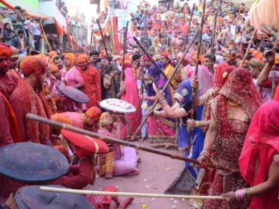 9. लठमार सहित कई तरह की खेली जाती है होली: रंगों की तरह ब्रज क्षेत्र की लठमार होली भी काफी प्रसिद्ध है। लठमार होली फाल्गुन मास की शुक्ल पक्ष की नवमी के दिन खेली जाती है। इस दिन महिलाएं पुरुषों को लठ यानी डंडे से पीटती हैं लेकिन वे प्यार से पिटाई करती हैं ताकि कोई चोट न लगे। डंडों से बचाव के लिए पुरुष ढ़ाल का उपयोग करते हैं। कहते हैं कि राधा आपने चहेते कृष्ण को प्यार से लठ मारकर सालभर में की गई गलतियों का बदला लेती थीं। तभी से यह त्योहार हर साल मनाया जाता है। खासकर मधुरा और वृंदावन में इस त्योहार को जोरों-शोरों से मनाया जाता है।