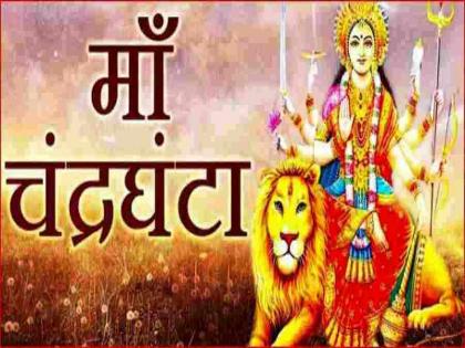 Navratri 2020: आज नवरात्रि के तीसरे दिन मां चंद्रघंटा की पूजा की जाती है। मां चंद्रघंटा के रूप को सौम्य बताया गया है। मां का यह स्वरूप परम शांतिदायक और कल्याणकारी होता है। मां के मस्तक में घंटे का आकार का अर्द्धचंद्र है, इसलिए मां को चंद्रघंटा देवी कहा जाता है। मां के दिव्य स्वरूप का ध्यान करने से हर तरफ सकारात्मक ऊर्जा का संचार होता है। मां को लाल रंग पसंग है, उन्हें लाल रंग का फूल अर्पित कर खुश किया जा सकता है।