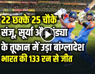 क्रिकेट : VIDEO: 22 छक्के 25 चौके, संजू, सूर्या और पंड्या के तूफान में उड़ा बांग्लादेश, देखें वीडियो