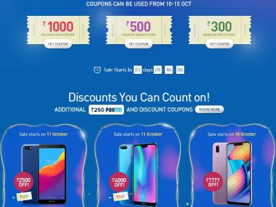ऑनर दशहरा सेल में यूजर को कम से कम न्यूनतम 20,000 रुपये, 10,000 रुपये और 5,00 रुपये की खरीदारी पर क्रमश: 1,000 रुपये, 5,00 रुपये और 300 रुपये के कूपर मिलेंगे। इन कूपन का इस्तेमाल यूजर स्मार्टफोन खरीदते वक्त कर सकते हैं। कंपनी यूजर्स को 1,800 रुपये का फ्री कूपन और 4,000 रुपये तक का डिस्काउंट भी देगी।