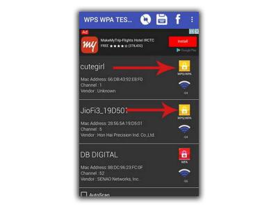 Step 15: जिन वाईफाई पर हरे या पीले रंग का लॉक दिखाई देगा उन्हें ही हैक किया जा सकता है। नजर आ रहे इन वाईफाई के सामने के लॉक पर टैप करें।