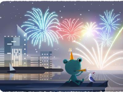 New Year's Eve 2019 Google Doodle (न्यू इयर २०१९ ईव गूगल डूडल) : गूगल ने नए साल के लिए एक खास डूडल तैयार किया है। गूगल डूडल (Google Doodle) में Froggy (गूगल का मौसम बताने वाला मेंढक) को दिखाया गया है, जो आतिशबाजी को देख रहा है।