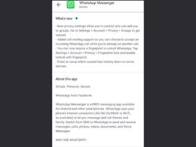 शुरुआत में इसे कुछ ही यूजर्स के लिए रोलआउट किया गया था, लेकिन अब यह सभी यूजर्स को मिलने लगा है। इसके साथ ही व्हाट्सऐप (WhatsApp) ने उस समस्या को भी फिक्स कर दिया है जिसके कारण कुछ स्मार्टफोन्स की बैटरी जल्दी खत्म हो रही थी।