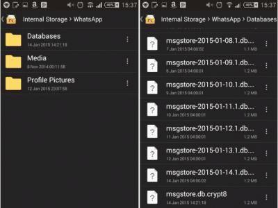STEP 3: SD कार्ड में आपको व्हॉट्सऐप के बनाए बैकअप में /sdcard/WhatsApp/Database पर जाना होगा, जहां आपको कई फाइल्स दिखेंगी।