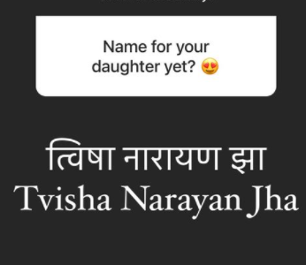 गौरतलब है कि आदित्य नारायण और श्वेता अग्रवाल 24 फरवरी को बेटी के माता-पिता बने हैं। दोनों ने सोशल मीडिया के जरिए अपने फैंस के साथ ये खुशखबरी शेयर की थी। आदित्य नारायण ने अपने-अपने इंस्टाग्राम अकाउंट पर पोस्ट शेयर करते हुए लिखा था, "श्वेता और मैं यह खुशखबरी साझा करके बेहद खुशी महसूस कर रहे हैं कि भगवान के आशीर्वाद से 24 फरवरी को हमारे यहां एक खूबसूरत बेटी का जन्म हुआ है।" आदित्य और श्वेता दिसंबर 2020 में शादी के बंधन में बंधे थे। दोनों ने इसी साल जनवरी में श्वेता के गर्भवती होने की खबर साझा की थी।