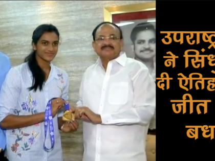 हाल ही में विश्व टूर फाइनल्स का खिताब जीतने के बाद भारत की स्टार बैडमिंटन खिलाड़ी पीवी सिंधु ने सोमवार को अपने परिवार के साथ उप-राष्ट्रपति वेंकैया नायडू से मुलाकात की। सिंधु से मुलाकात के बाद नायडू ने कहा- पीवी सिंधु ने हमारे देश का नाम और ऊंचा किया है। सिंधु ने अपनी हालिया जीत से इतिहास रचा है। मैं उन्हें इस कामयाबी पर बधाई देता हूं।