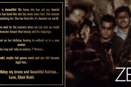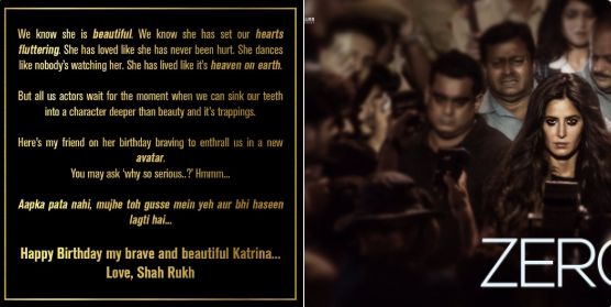 कटरीना कैफ के बर्थडे पर सुबह से ही फैन्स और बीटाउन के सितारे उन्हें विश कर रहे हैं, लेकिन शाहरुख खान का उन्हें जन्मदिन की बधाई देने का अंदाज काफी खास रहा। किंग खान ने अपने सोशल अकाउंट पर अपकमिंग फिल्म 'जीरो' में कटरीना कैफ के लुक का पहला पोस्टर जारी किया। इसके साथ ही उन्होंने एक मेसेज भी शेयर किया।