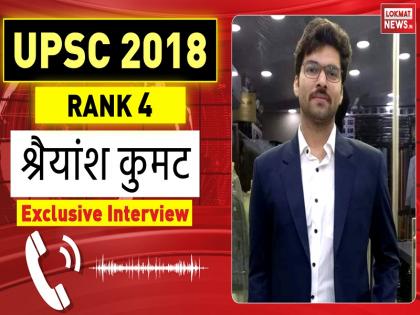 संघ लोक सेवा आयोग (UPSC) ने सिविल सेवा परीक्षा 2018 के फाइनल रिजल्ट घोषित कर दिए हैं। इस परीक्षा में राजस्थान के श्रेयांश कुमट ने चौथा स्थान हासिल किया है। श्रेयांश ने तैयारी के लिए किताबों के साथ-साथ इंटरनेट की भी मदद ली थी। लोकमत न्यूज के साथ विशेष बात-चीत में श्रेयांश ने बताया कि वे दिनभर में 6 से 10 घंटे पढ़ाई करते थे। इस वीडियो में सुनिए श्रेयांश की सक्सेस के और भी राज...