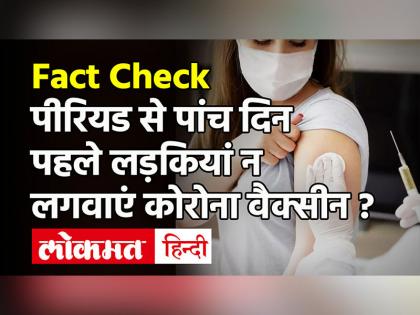 Periods से 5 दिन पहले और 5 दिन बाद न लें कोरोना वैक्सीन,जानें इस Viral Msg की सच्चाई By लोकमत न्यूज़ डेस्क | Updated: April 24, 2021 19:27 ISTOpen in App सोशल मीडिया पर एक मैसेज वायरल हो रहा है, जिसमें दावा किया जा रहा है कि पीरियड से पांच दिन पहले और पांच दिन बाद तक महिलाएं कोविड रोधी वैक्सीन न लगवाएं. जानें इस वायरल मैसेज की सच्चाई इस वीडियो में और पढ़ें Subscribe to Notifications