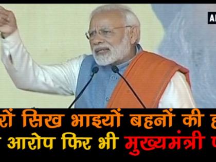 प्रधानमंत्री नरेंद्र मोदी ने मध्यप्रदेश में कमलनाथ को मुख्यमंत्री बनाने के कांग्रेस के फैसले को आड़े हाथों लेते हुए गुरुदासपुर रैली में गुरुवार को करारा हमला किया। उन्होंने कहा कि जिन्होंने हजारों सिख भाई-बहनों के आरोपों के बाद भी दंगों के आरोपी को मुख्यमंत्री पद से नावाजा, उनसे पंजाब ही नहीं पूरे देश को सतर्क रहने की जरूरत है।