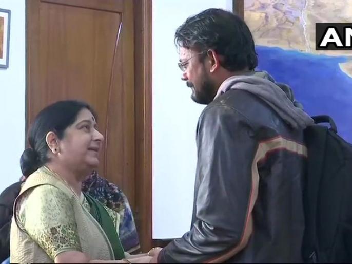 पाकिस्तान की जेल से मंगलवार को रिहा होकर भारत लौटे हामिद नेहाल अंसारी ने बुधवार को विदेशमंत्री सुषमा स्वराज से मुलाकात की। हामिद अपने परिवार के साथ आकर नई दिल्ली में सुषमा स्वराज से मिले। हामिद की मां ने सुषमा स्वराज से कहा 'मेरा भारत महान, मेरी मैडम महान, सब मैडम ने ही किया है। बता दें कि पाकिस्तान की जेल में छह साल की सजा काटने के बाद मंगलवार शाम भारत लौटे मुंबई निवासी सॉफ्टवेयर इंजीनियर हामिद अंसारी का अटारी वाघा सीमा पर परिजनों से पुनर्मिलन हुआ।
