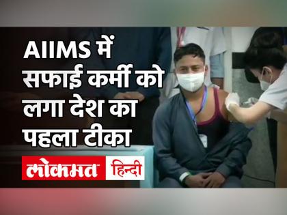 PM Modi ने शनिवार को देशभर में कोरोना से जंग के लिए टीकाकरण अभियान की शुरुआत की और इसके बाद दिल्ली के एम्स में देश का पहला कोरोना टीका दिया गया. दिल्ली के AIIMS में एक सफाई कर्मी को सबसे पहले कोरोना का टीका लगाया गया है. इस सफाई कर्मी का नाम मनीष कुमार है. इस मौके पर वहां केंद्रीय स्वास्थ्य मंत्री डॉ. हर्षवर्द्धन और AIIMS के डायरेक्टर डॉ. रणदीप गुलेरिया भी मौजूद थे. इतना ही नहीं AIIMS के डायरेक्टर डॉ. रणदीप गुलेरिया ने भी कोरोना का टीका लगवाया है. जाहिर है कोरोना वैक्सीन को लेकर लोगों के बीच में काफी अफवाह भी है. ऐसे में AIIMS डायरेक्टर के वैक्सीन लगवाने से लोगों के बीच एक positive message जाएगा. इसके अलावा नीति आयोग के सदस्य डॉ. वीके पॉल को भी कोरोना का टीका लगाया गया है. इससे पहले प्रधानमंत्री नरेन्द्र मोदी ने शनिवार को वीडियो कांफ्रेंस के माध्यम से कोविड-19 के खिलाफ विश्व के सबसे बड़े टीकाकरण अभियान की शुरुआत की. इस दौरान प्रधानमंत्री के साथ भारत के सभी राज्यों और केन्द्रशासित प्रदेशों के 3006 टीकाकरण केन्द्र आपस में जुडे रहे. बता दें, पहले चरण के लिए सभी राज्यों और केंद्रशासित प्रदेशों में इसके लिए कुल 3006 टीकाकरण केंद्र बनाए गए हैं. पहले दिन तीन लाख से ज्यादा स्वास्थ्यकर्मियों को कोविड-19 के टीके की खुराक दी जाएगी.