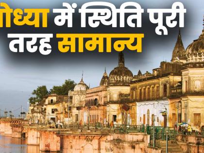 राम जन्मभूमि-बाबरी मस्जिद विवाद में सुप्रीम कोर्ट का फैसला आने के बाद बीते 30 घंटे में यूपी के अयोध्या में स्थिति पूरी तरह सामान्य है। राम जन्मभूमि-बाबरी मस्जिद मामले में सर्वोच्च अदालत के मुख्य न्यायाधीश जस्टिस रंजन गोगोई की अध्यक्षता वाली 5 सदस्यीय संविधान पीठ ने नौ नवंबर को सर्वसम्मति से फैसले सुनाया। 134 सालों से जारी इस कानूनी विवाद की संवेदनशीलता को देखते हुए उत्तर प्रदेश के अयोध्या समेत पूरे देश में सुरक्षा-व्यवस्था हाई अलर्ट पर है। केंद्रीय गृह मंत्री अमित शाह ने राष्ट्रीय सुरक्षा सलाहकार अजीत डोभाल, आईबी के निदेशक अरविंद कुमार समेत कई आला अफसरों के साथ बैठक की। अमित शाह ने यूपी के सीएम योगी आदित्यनाथ और मध्य प्रदेश के सीएम कमलनाथ समेत कई राज्यों के मुख्यमंत्रियों से सुरक्षा हालात पर चर्चा की। रविवार शाम तक देश के किसी भी हिस्से से किसी भी तरह के अप्रिय घटना की सूचना नहीं आयी है। प्रधानमंत्री नरेंद्र मोदी ने शनिवार शाम राष्ट्र के नाम अपने सम्बोधन में सभी समुदायों से शांति बनाए रखने की अपील की थी।