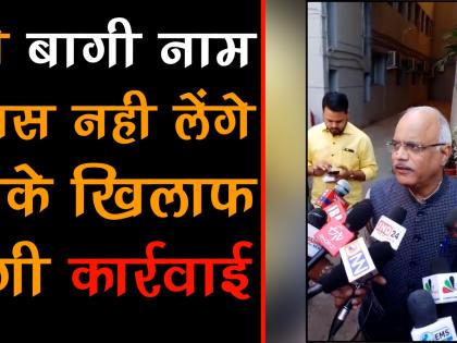भाजपा नेता विनय ने कहा, जो बागी नाम वापस नही लेंगे उनके खिलाफ होगी कार्रवाई By लोकमत न्यूज़ डेस्क | Updated: November 15, 2018 09:19 ISTOpen in Appभाजपा के प्रभारी विनय सहस्त्रबुद्धे ने कहा कि जो बागी नाम वापस नही लेंगे उनके खिलाफ पार्टी संविधान के अनुसार कार्रवाई होगी. और पढ़ें Subscribe to Notifications