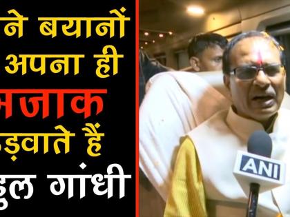 मध्य प्रदेश के मुख्यमंत्री शिवराज सिंह चौहान ने एएनआई से बातचीत में राहुल गांधी के मजाए उड़ाए जाने पर बयान दिए। उन्होंने कहा कांग्रेस अध्यक्ष ऐसी बातें ही करते हैं जिससे उनका मजाक उड़ जाता है। इसमें किसी और का कोई हाथ नहीं है वह खुद अपना मजाक उड़वाते हैं। जब तक मनमोहन सिंह प्रधानमंत्री थे, उनके बारे में राहुल गांधी जैसी भाषा किसी ने इस्तेमाल की।