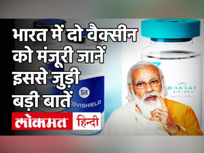 भारत में दो वैक्सीन को मंजूरी जानें इससे जुड़ी बड़ी बातेंनए साल की शुरुआत से ही कोरोना महामारी से निजात की ओर भारत सरकार ने कई अहम फैसले लिए हैं। कोरोना वैक्सीन को लेकर लगातार खुशखबरी मिल रही है। एक्सपर्ट कमिटी की सिफारिश के बाद ड्रग कंट्रोलर जनरल ऑफ इंडिया (DCGI) ने सीरम इंस्टिट्यूट की कोविशील्ड और भारत बायोटेक की कोवैक्सीन को भारत में इमर्जेंसी इस्तेमाल के लिए मंजूरी दे दी है। इसके अलावा जायडस कैडिला की वैक्सीन 'जाइकोव-डी' को तीसरे चरण के क्लिनिकल ट्रायल के लिए मंजूरी मिल गई है। दोनों वैक्सीन के इमर्जेंसी इस्तेमाल को मंजूरी मिलने के बाद पीएम मोदी ने ट्वीट कर कहा- 'DCGI ने सीरम इंस्टिट्यूट के कोविशील्ड और भारत बायोटेक के कोवैक्सीन को मंजूरी दे दी है। भारत को बधाई। हमारे सभी मेहनती वैज्ञानिकों और इनोवेटर्स को बधाई।'प्रधानमंत्री ने 'आत्मनिर्भर भारत' का उल्लेख करते हुए कहा कि हर भारतीय को इस बात पर गर्व होगा कि जिन दो टीकों के आपात इस्तेमाल की मंजूरी दी गई है, उन्हें भारत में ही बनाया गया है। उन्होंने कहा, 'हर भारतीय को गर्व होगा कि जिन दो टीकों को आपातकालीन उपयोग की मंजूरी दी गई है वे भारत में बने हैं। यह हमारे वैज्ञानिक समुदाय की उत्सुकता को दर्शाता है कि एक आत्मानिभर भारत के सपने को पूरा करने के लिए, जिसके मूल में देखभाल और करुणा है।'भारत में कोरोना वैक्सीन के इमर्जेंसी इस्तेमाल को मंजूरी मिलने के बाद विश्व स्वास्थ्य संगठन (WHO) ने भी इसका स्वागत किया है। WHO के साउथ ईस्ट एशिया रीजन की रीजनल डायरेक्टर डॉ. पूनम खेत्रपाल सिंह ने कहा- विश्व स्वास्थ्य संगठन कोविड-19 वैक्सीन्स के इमर्जेंसी इस्तेमाल को मंजूरी देने के भारत के निर्णय का स्वागत करता है। सीरम इंस्टिट्यूट ऑफ इंडिया, पुणे के सीईओ अदार पूनावाला ने भी इस बारे में ट्वीट करके जानकारी दी। उन्होंने ट्वीट किया- सभी को नया साल मुबारक हो। कोविशील्ड, भारत के पहले COVID-19 वैक्सीन को मंजूरी मिल गई है। सुरक्षित और प्रभावी यह वैक्सीन आने वाले हफ्तों में रोल-आउट के लिए तैयार है।केंद्रीय मंत्री प्रकाश जावड़ेकर ने कहा कि भारत संभवत: दुनिया में पहला ऐसा देश है जहां चार टीकों पर काम चल रहा हैं। कुछ धार्मिक हस्तियों द्वारा टीके पर संदेह जताए जाने के बारे में पूछे जाने पर, जावड़ेकर ने कहा कि "हमारा टीका प्रभावी है" और बाकी दुनिया भी इसका उपयोग कर रही है। उन्होंने कहा कि कई परीक्षणों के बाद टीके तैयार होते हैं और यह पूरी तरह से सुरक्षित है। केंद्रीय स्वास्थ्य मंत्री हर्षवर्धन ने लोगों से कोविड-19 के टीके के सुरक्षित होने और इसकी प्रभाव क्षमता के बारे में ‘‘अफवाहों'' और भ्रामक सूचना अभियानों को लेकर गुमराह नहीं होने की शनिवार को अपील की। साथ ही उन्होंने क