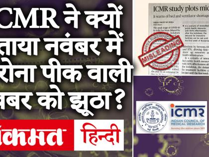 भारतीय आयुर्विज्ञान अनुसंधान परिषद ( ICMR) ने उस रिसर्च को झूठा बताया है जिसमें दावा किया है कि नवंबर के मध्य में भारत में कोरोना वायरस अपने चरम पर होगा। ICMR ने कहा है कि यह दावा मामले की आधिकारिक स्थिति को प्रतिबिंबित नहीं करता। ICMR ने अपने आधिकारिक ट्विटर हैंडल पर लिखा, 'आईसीएमआर को इस रिसर्च का श्रेय देने वाली खबरें भ्रामक हैं। रिसर्च आईसीएमआर ने नहीं किया है और आईसीएमआर की आधिकारिक स्थिति को नहीं दर्शाता है।' प्रेस ट्रस्ट ऑफ इंडिया की रिपोर्ट के अनुसार, यह अध्ययन ICMR की ओर से गठित एक ग्रुप के रिसर्चर्स द्वारा किया गया था। इस रिसर्च में कहा गया है कि लॉकडाउन ने संक्रमण के मामलों में 69 से 97 प्रतिशत तक कमी कर दी, जिससे स्वास्थ्य प्रणाली को संसाधन जुटाने एवं बुनियादी ढांचा मजबूत करने में मदद मिली।