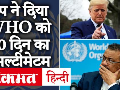 अमेरीकी राष्ट्रपति डोनाल्ड ट्रंप ने चीन के मामले पर विश्व स्वास्थ्य संगठन सिर्फ 30 दिन का अल्टीमेटम दिया है. ट्रम्प ने अपने अल्टीमेटम में कहा कि इस एक महीने में who ये साबित करे कि वो चीन के प्रभाव में नहीं है. ट्रंप ने कहा कि अगर ऐसा नहीं होता है तो विश्व स्वास्थ्य संगठन से अमेरिका अपनी सदस्स्यता और इसे दी जाने वाली आर्थिक मदद पर हमेशा के लिए रोक सकता है. ट्रंप सरकार ने विश्व स्वास्थ्य संगठन को सालाना दी जाने वाली 50 करोड़ डॉलर की आर्थिक मदद 14 अप्रैल को रोक दी थी. अमेरिका का विश्व स्वास्थ्य संगगठन पर आरोप है कि वुहान में कोरोनावायरस के पहली बार सामने आने के बाद वायरस को फैलने से से रोकने में चीन का मैनेजमेंट खराब रहा है. इसके साथ ही चीन की इस नाकामी को छुपाने में विश्व स्वास्थ्य संगठन का रोल पता लगाने के लिए समीक्षा की जा रही है. डब्ल्यूएचओ प्रमुख डॉ टेड्रोस अधानोम घेब्रेयेसस को लिखी चिठ्ठी में ट्रंप ने कहा कि "यह साफ है कि आपने और आपके संगठन ने महामारी से निपटने में बार-बार गलत कदम उठाए हैं जो दुनिया को बहुत महंगे पड़े हैं. डब्ल्यूएचओ के सामने अब बस एक ही रास्ता है कि वो साबित करे कि वो चीन के असर में नहीं है. ट्रप ने कहा कि मेरे प्रशासन ने " उन्होंने कहा, “मेरे प्रशासन ने आपसे इस बात पर पहले ही चर्चा शुरू कर दी है कि विश्व स्वास्थ्य संगठन में कैसे सुधार लाया जाए. ट्रंप ने सोमवार को कहा कि अमेरिका के राष्ट्रपति के तौर पर मेरा फर्ज है कि आपको जानकारी दूं कि मैं अमेरिकी करदाताओं के डॉलर को उस संगठन को देने की इजाजत नहीं दे सकता हूं, जो वर्तमान हालात में अमेरिकी का इंट्रेस्ट नहीं देख रहा है. ट्रंप ने 18 मई को लिखी अपी चिठ्ठी में आरोप लगाया है कि डब्ल्यूएचओ वायरस के पैदा होने के सोर्स की स्वतंत्र जांच की परमिशन देने के लिए चीन से सार्वजनिक रूप से अपील करने में नाकाम रहा है. चीनी राष्ट्रपति शी चिनफिंग ने गोपनीयता और छुपाने के आरोपों को सोमवार को खारिज कर दिया और कहा कि हमने पारदर्शिता और जिम्मेदारी से काम किया चीन का कहना है कि वक्त रहते डब्ल्यूएचओ और इससे जुड़े देशों को बता दिया गया था. ट्रंप ने चीन पर कोरोनावायरस छुपाने का आरोप लगाया है जबकि ऑस्ट्रेलिया और यूरोपीय संघ ने चीन से वायरस की उत्पत्ति की स्वतंत्र जांच समेत कोविड-19 को नियंत्रण करने के प्रयासों में पारदर्शिता की मांग की है. विश्व स्वास्थ्य संगठन कोरोना वायरस संक्रमण से निपटने में विश्व स्वास्थ्य संगठन की भूमिका की जांच की ज्यादातर सदस्य देशों की मांग को मान ली. अफ्रीकी, यूरोपीय और अन्य देशों के गठबंधन कोविड-19 से निपटने में विश्व स्वास्थ्य संगठन के रोल की स्वतंत्र जांच की मांग कर रहे हैं. इस जांच का मकसद वायरस की उत्पत्ति के जगह जैसे कुछ 