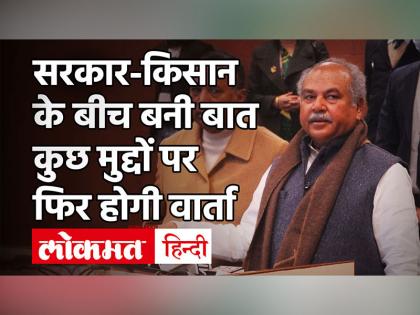 केंद्र सरकार के तीन नए कृषि कानूनों (Farm Laws) का विरोध कर रहे किसानों की बुधवार को सरकार के तीन मंत्रियों के साथ सातवें दौर की बैठक खत्म हो चुकी है। बैठक खत्म होने के बाद केंद्रीय कृषि मंत्री नरेंद्र सिंह तोमर (Narendra Singh Tomar) ने कहा कि बातचीत अच्छे वातावरण में हुई है। सरकार और किसान नेताओं के बीच चार में से दो मुद्दों पर सहमति बन गई है, जबकि अन्य दो मुद्दों के लिए चार जनवरी को फिर से बैठक होगी। हजारों की संख्या में पंजाब-हरियाणा समेत विभिन्न राज्यों के किसान पिछले एक महीने से भी ज्यादा समय से दिल्ली की सीमाओं पर आंदोलन कर रहे हैं।आज बुधवार दोपहर ढाई बजे शुरू हुई किसान संगठन के नेताओं और सरकार के बीच बैठक के खत्म होने के बाद नरेंद्र सिंह तोमर ने कहा, ''आज की बैठक पहले की तरह बहुत अच्छे वातावरण में हुई। आज की बैठक में किसान संगठनों के नेताओं ने जो चार विषय चर्चा के लिए रखे थे, उसमें दो मुद्दों पर रजामंदी हो गई है। पहला- पराली को लेकर और दूसरा- बिजली कानून।'' उन्होंने आगे कहा कि कृषि कानूनों और एमएसपी पर कानून को लेकर चर्चा खत्म नहीं हुई है। इसके लिए फिर से चार जनवरी को बैठक होगी। तोमर ने कहा, ''सर्दी का मौसम है, इसलिए किसानों को बुजुर्गों और बच्चों को घर जाने के लिए कहना चाहिए। यह भी किसान संगठनों से मैंने कहा है।''वहीं, किसान संगठनों में एक संगठन के नेता कलवंत सिंह संधू ने बैठक के बाद कहा, ''सरकार और किसान यूनियनों के बीच अगले दौर की बैठक चार जनवरी को होगी।'' उन्होंने आगे कहा कि आज की बैठक मुख्य रूप से बिजली और पराली जलाने के मुद्दे पर केंद्रित रही। अगली बैठक में एमएसपी गारंटी और तीन कृषि कानूनों पर बात होगी।केंद्रीय कृषि मंत्री नरेंद्र सिंह तोमर, रेलवे, वाणिज्य और खाद्य मंत्री पीयूष गोयल तथा वाणिज्य राज्य मंत्री सोमप्रकाश विज्ञान भवन में 41 किसान संगठनों के प्रतिनिधियों के साथ चर्चा कर रहे थे। दो घंटे तक चर्चा के बाद केंद्रीय मंत्री प्रदर्शनकारी किसानों के लंगर में भी शामिल हुए। आंदोलन कर रहे किसान अपनी मांगों पर डटे हुए हैं कि सरकार तीनों नए कृषि कानूनों को रद्द करे। इसके साथ ही एमएसपी पर कानून भी बनाए। वहीं, पराली और बिजली को लेकर भी किसानों ने मांग रखी है। किसानों और सरकार के बीच अब अगले दौर की वार्ता नए साल में 9 जनवरी को होगी।