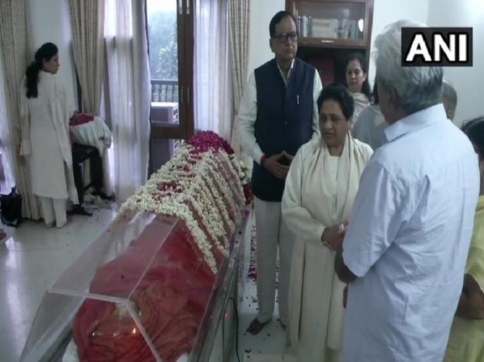 सुषमा स्वराज के निधन की खबर मिलने के बाद बसपा सुप्रीमो और उत्तर प्रदेश की पूर्व मुख्यमंत्री मायावती बुधवार सुबह दिल्ली स्थिति उनके आवास पहुंचीं और अपनी श्रद्धांजलि दी। मायावती ने कहा, 'उनका जाना व्यक्तिगत रूप से मेरे लिए निराशा की बात है। वह एक दक्ष राजनेता और अच्छी वक्ता थीं। उनका व्यवहार विपक्ष के लोगों के साथ भी बहुत दोस्ताना था। मैं प्रार्थना करती हूं कि उनके परिवार को इस सदमें से उबरने की शक्ति मिले।'