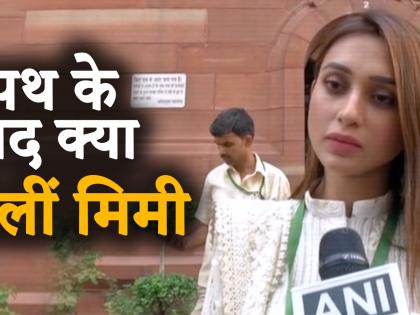 मिमी चक्रवर्ती ने लोकसभा में सांसद पद की शपथ लेने के बाद मीडिया से कही ये बात By ज्ञानेश चौहान | Updated: June 26, 2019 17:02 ISTOpen in Appएक्ट्रेस से पॉलिटीशियन बनी मिमी चक्रवर्ती ने शपथ लेने के बाद कहा, “आज मेरा पहला दिन था, मेरे लिए यह बहुत अच्छा अनुभव था कि मैंने शपथ ली और हमने पीएम मोदी का भाषण सुना। वीडियो में देखिए मिमी ने और क्या कहा... और पढ़ें Subscribe to Notifications