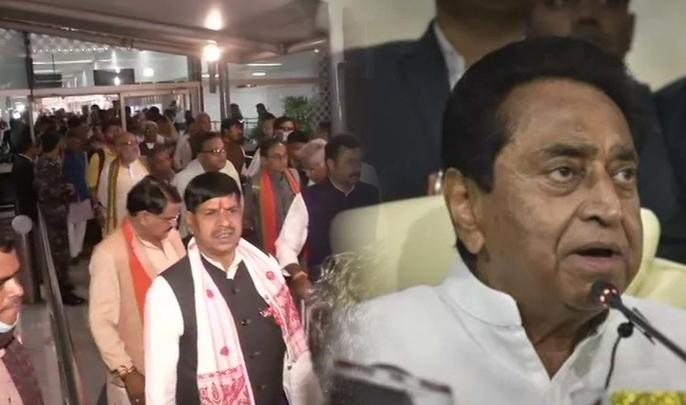 कांग्रेस के 22 विधायकों के इस्तीफे देने के बाद कमलनाथ सरकार पर संकट है। हालांकि कमलनाथ सरकार ने विधानसभा में अपना बहुमत साबित करने का निर्णय लिया है। इससे बीजेपी खेमे में विधायकों के टूटने का डर बैठ गया है। भाजपा अपने विधायकों को मंगलवार देर रात विमान से दिल्ली लेकर आई और गुरुग्राम में किसी अज्ञात जगह पर सुरक्षित रखा है। आलम यह था कि विधायकों को भी नहीं बताया गया कि उन्हें कहा ले जाया जा रहा है।