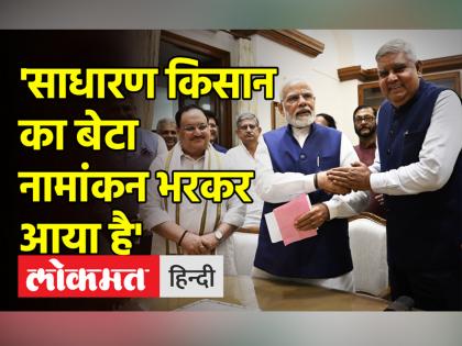 NDA candidate Jagdeep Dhankhar files nomination । एक ओर जहां राष्ट्रपति चुनने के लिए वोटिंग हो रही है वही, दूसरी तरफ उपराष्ट्रपति पद के चुनाव की प्रक्रिया भी जारी है. एनडीए के उपराष्ट्रपति कैंडिडेट जगदीप धनखड़ ने आज अपना नामांकन भरा इस दौरान पीएम नरेंद्र मोदी , बीजेपी चीफ जेपी नड्डा, रक्षा मंत्री राजनाथ सिंह, गृह मंत्री अमित शाह और केंद्रीय मंत्री नितिन गडकरी मौजूद रहे. देखें ये वीडियो.
