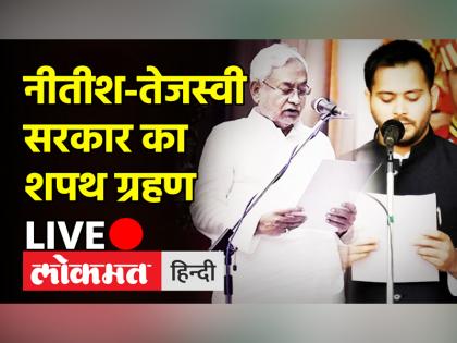नीतीश कुमार - तेजस्वी यादव सरकार का शपथ ग्रहण By लोकमत न्यूज़ डेस्क | Updated: August 10, 2022 14:24 ISTOpen in AppNitish Kumar - Tejashwi Yadav Oath Ceremony LIVE । जदयू नेता नीतीश कुमार बिहार के मुख्यमंत्री के तौर पर आठवीं बार शपथ ली. वहीं, अब तक बिहार विधानसभा में नेता प्रतिपक्ष रहे राजद नेता तेजस्वी यादव ने दूसरी बार बिहार के उपमुख्यमंत्री के तौर पर शपथ ली. और पढ़ें Subscribe to Notifications
